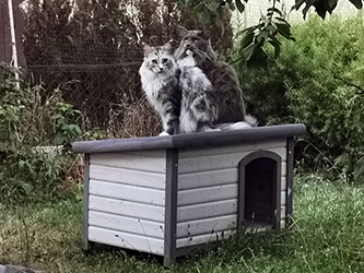 | Heute ist Mister Milow in sein neues Zuhause gezogen. Er wohnt jetzt bei Wolfgang und Birgit und einer älteren Katzendame namens Tammy in Berlin-Schöneweide. Gelegentlich darf er dann auch mit auf das Grundstück und dort seinen Auslauf in einem Freigehege genießen. Wir wünschen Milow in seinem neuen Zuhause alles Gute und seinen neuen Besitzern ganz viel Freude mit ihm. |